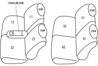 運転席シートリフター付き車(オプション) L →1列目アームレスト形状が違う Cool / Coolターボ →1列目形状違う、シート表皮が違う モユ →運転席シートリフター付きの為 VS →1列目アームレスト形状が違う |
