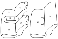 E26 | バン DX / EX | 2021年10月20日 マイナーチェンジ後のガソリン車 2022年4月下旬 マイナーチェンジ後のディーゼル車 1列目:座面形状が4:6分割、ヘッドレスト一体型、センターシート有り 2列目:背もたれ座面一体型、ヘッドレスト無し、シートベルト有り 3列目:背もたれ座面一体型、ヘッドレスト無し、シートベルト有り ※9人乗り仕様の1・2列目に適合 |