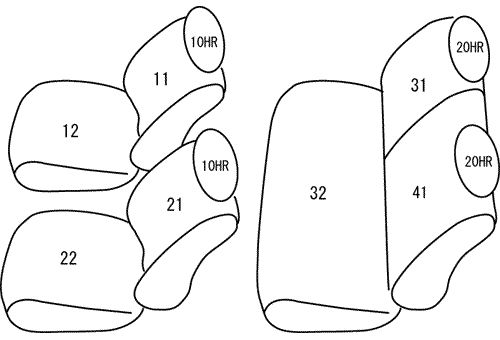 AK12 / YK12 / BNK12 | 15G / 15E / 14G-FOUR / 14E-FOUR / 14S-FOUR(H20.5.27~) / 12S(H20.5.27~) / 12B 12E / 25th Happiness / Iyashi Interior | 2列目背もたれ4:6分割シート(オプション可) ※1列目アームレスト付き車は背もたれカバーに穴を開ける加工が必要です ※ドーナツ型ヘッドレストは中央穴はカバーで隠れる ※チャイルドシートフック(オプション)非対応 |