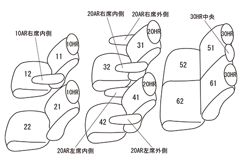 MZRA92W / MZRA97W | S-G 車いす仕様車タイプⅠ(車いす1名仕様) G 車いす仕様車タイプⅠ(車いす1名仕様) X 車いす仕様車タイプⅠ(車いす1名仕様) | ※2列目(運転席)キャプテンシートは通常のシートに対応(オットマンが装備されていないキャプテンシート) 快適温熱シート(シートヒーター)装備車・未装備車、共に対応 寒冷地仕様にも対応 ※シートカバーを装着することで3列目シート跳ね上げ時、車体側にロックをかける際、シートを車体側に押すサポートが必要になります。 カバーは上記の作業に考慮して、最小限の厚みにしています。 ※コンソールボックス装備車のフタ用にカバー(10AR中央)が付属していますが、シートカバーを装着することでフタを閉じてロックをかける際、フタを押し込む力が必要になります。←コンソールトレイ未装備車・フロアトレイのみ(フタが無い)の場合は、カバー(10AR中央)は使用しません。 |