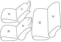 S700M / S710M | クルーズ ターボ / クルーズ ※選べるカラーパック / 省力パック / LEDパック / 視界補助パック 適合可 | 1列目背もたれ分離式ヘッドレスト、2列目5:5分割シート ※カバーの厚みがある為、2列目の背もたれを倒してロックを掛ける際、背もたれ背面を上から押すサポートが必要となります。 また、ロックを解除して背もたれを起こす際は、背もたれ背面を上から押さえながらリクライニングレバーを引く必要があります。 (上から押さえずにレバーを引こうとしてもレバーが動かない為) |