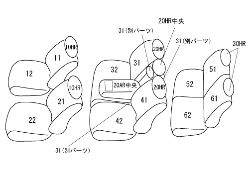 VJA300W | AX | 運転席パワーシート・助手席手動シート 2列目背もたれ4:2:4分割 3列目5:5分割手動シート (メーカーオプションのトノカバーに対応可) |